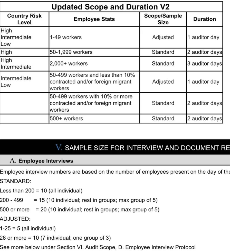 Costco人权和反恐审核人天表(大部份工厂都是来2位审核员审核一天结束)